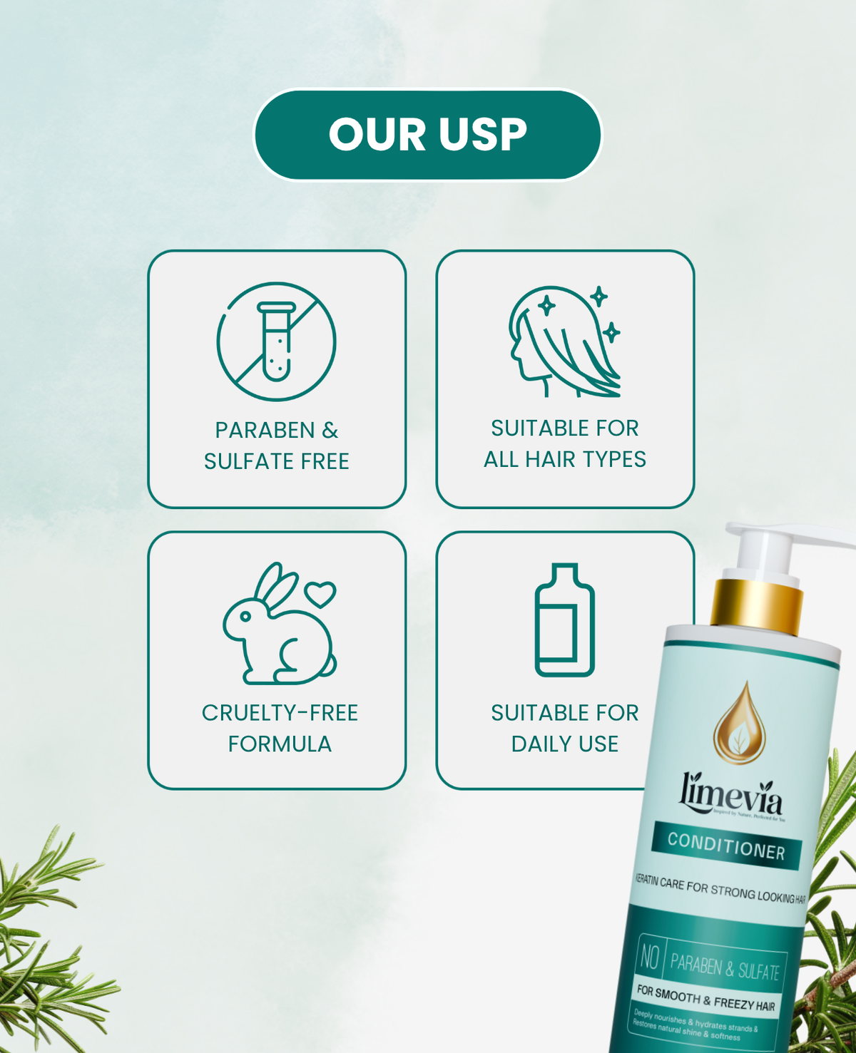 At Limevia, we believe that true beauty begins with purity. Inspired by nature and perfected by science, our mission is to create haircare products that nourish, repair, and protect — without compromise. Every Limevia formula is carefully crafted with plant-based actives, essential nutrients, and toxin-free ingredients that bring your hair back to its natural strength and shine.